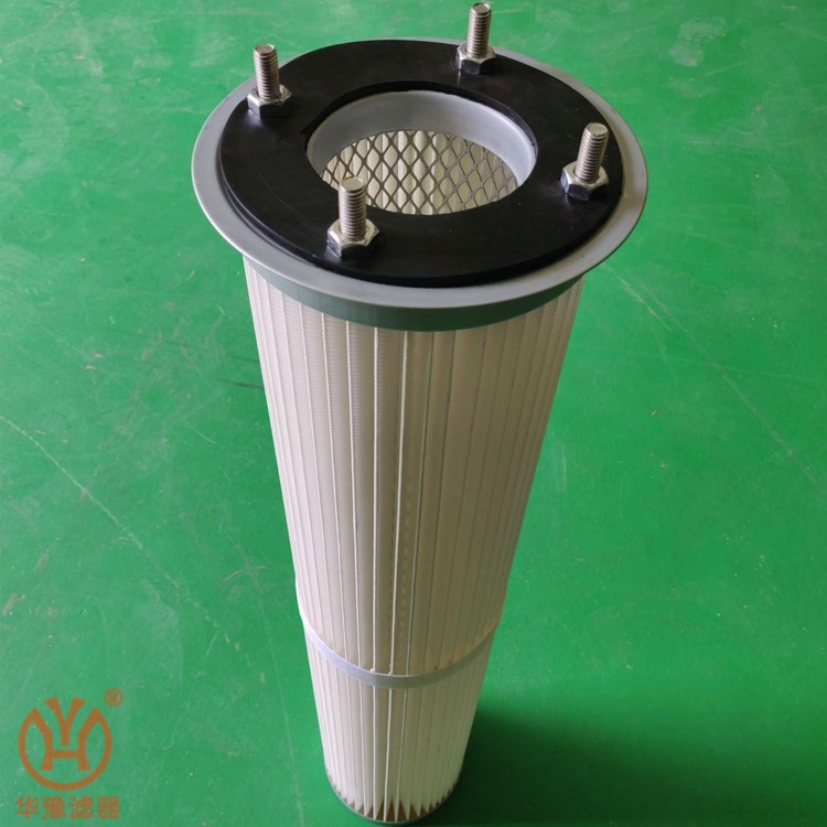 濾筒的品種較多,有細而長與粗而短之分。細長濾筒(如φ≤160,L=1~2m),其褶(如45褶)間空隙大、夾角大,褶少而淺,過濾面積比同徑同長的濾袋大2~5倍,清灰易而效果好;適用于濃度≥15g/m粉塵的過濾除塵,過濾風速0.6~1.2m/min。粗短濾筒(如φ350,L=0.66m)直徑大、長度短、褶多(120~350褶)而深、褶間空隙小,過濾面積大,較之同徑同長濾袋面積大14~35倍,適于場地面積小、空間小的地方布置;但因褶角小,粉塵易積聚,難于清灰,適于濃度≤5g/m粉塵的過濾除塵,過濾風速不宜>0.6m/min。